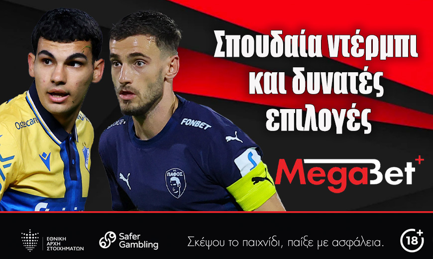 Το παρών κείμενο αποτελεί διαφημιστική καταχώρηση της Cleverpath Holdings Lts με την επωνυμία Megabet Plus κατέχει άδεια Αποδέκτη Κλάσης Α (014) και Κλάσης Β (011) από την Εθνική Αρχή Στοιχημάτων που επιτρέπει τo στοιχηματισμό σε υποκαταστήματα στην Κυπριακή Δημοκρατία και στο διαδίκτυο www.megabetplus.com.cy | 18+ | Σκέψου το παιχνίδι. Παίξε με ασφάλεια | https://safergambling.gov.cy | ΕΑΣ