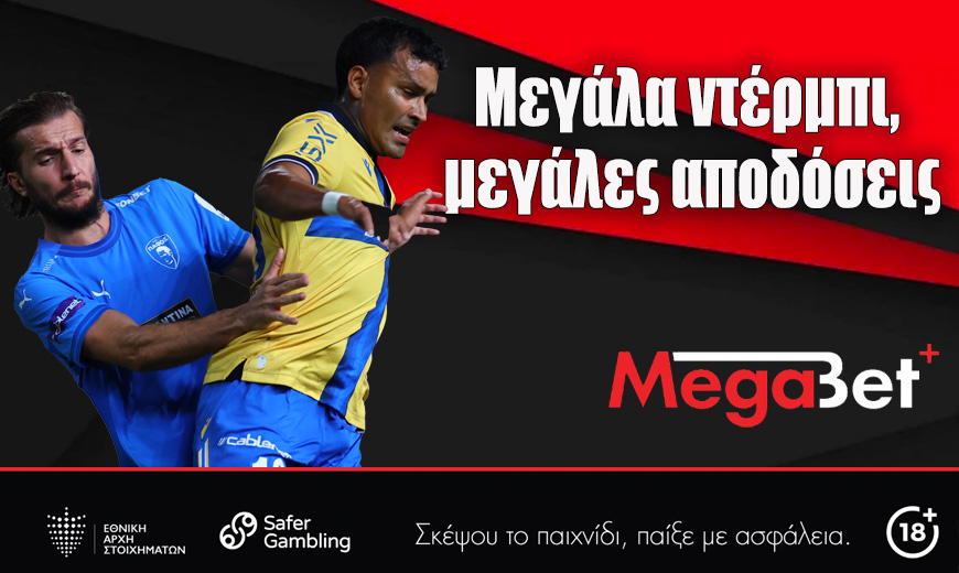 Το παρών κείμενο αποτελεί διαφημιστική καταχώρηση της Cleverpath Holdings Lts με την επωνυμία Megabet Plus κατέχει άδεια Αποδέκτη Κλάσης Α (014) και Κλάσης Β (011) από την Εθνική Αρχή Στοιχημάτων που επιτρέπει τo στοιχηματισμό σε υποκαταστήματα στην Κυπριακή Δημοκρατία και στο διαδίκτυο www.megabetplus.com.cy | 18+ | Σκέψου το παιχνίδι. Παίξε με ασφάλεια | https://safergambling.gov.cy | ΕΑΣ