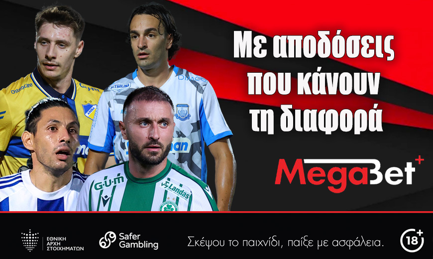 Το παρών κείμενο αποτελεί διαφημιστική καταχώρηση της Cleverpath Holdings Lts με την επωνυμία Megabet Plus κατέχει άδεια Αποδέκτη Κλάσης Α (014) και Κλάσης Β (011) από την Εθνική Αρχή Στοιχημάτων που επιτρέπει τo στοιχηματισμό σε υποκαταστήματα στην Κυπριακή Δημοκρατία και στο διαδίκτυο www.megabetplus.com.cy | 18+ | Σκέψου το παιχνίδι. Παίξε με ασφάλεια | https://safergambling.gov.cy | ΕΑΣ