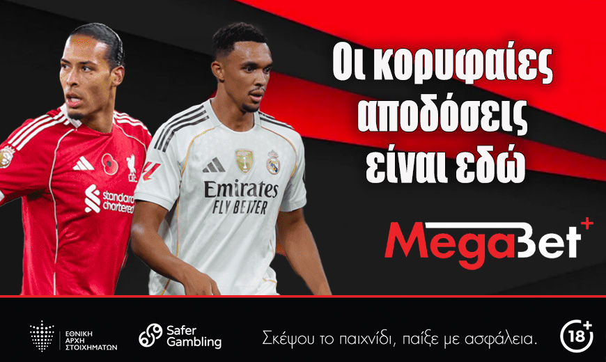 Το παρών κείμενο αποτελεί διαφημιστική καταχώρηση της Cleverpath Holdings Lts με την επωνυμία Megabet Plus κατέχει άδεια Αποδέκτη Κλάσης Α (014) και Κλάσης Β (011) από την Εθνική Αρχή Στοιχημάτων που επιτρέπει τo στοιχηματισμό σε υποκαταστήματα στην Κυπριακή Δημοκρατία και στο διαδίκτυο www.megabetplus.com.cy | 18+ | Σκέψου το παιχνίδι. Παίξε με ασφάλεια | https://safergambling.gov.cy | ΕΑΣ